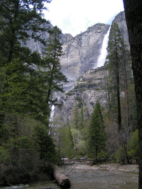 Vacation 2010, Day 04, May 18 Cooked Ham and Cheese omelets in the RV for breakfast. Fueled the RV and left Fresno on Hwy-180 east, then 41 east to Yosemite National Park. We were trying to find a place to park the RV (without much luck) when a guy in a park pickup truck pointed at me and motioned me to follow him. He guided me to a spot near a construction yard and told me to park there. There is a tram system that goes all around the valley. We walked a short distance to the store and caught the tram to Yosemite Falls. We hiked about a mile to the base of Lower Yosemite Falls and back to the tram stop. Got back on the tram and rode to Sentinel Bridge where we got off to take more pictures. Then it was back on the tram to complete the trip around the valley. Back at the store we did some shopping and walked back to the RV. Then it was back on Hwy-41 back towards Fresno. We found a KOA campground in Coarsegold, set up camp and I grilled steaks while Marilyn cooked potatoes and made salad.