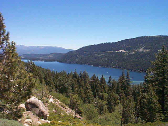 Had breakfast at Jim's parents then drove east on I-80 over Donner Pass to Truckee. Turned onto highway 89 to South Lake Tahoe. Staying at the Tahoe Valley RV Park. Marilyn son, Jason came over to the park to visit before he had to go to work. Ate dinner at the RV park. The pictures are Donner Lake and the Tram at Squaw Valley. Dominos: Jim: 30, Marilyn: 31. Mileage today: 113 Total Mileage: 3546