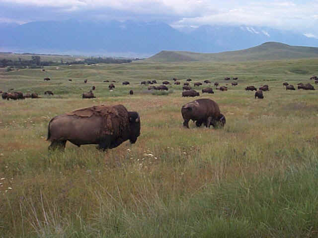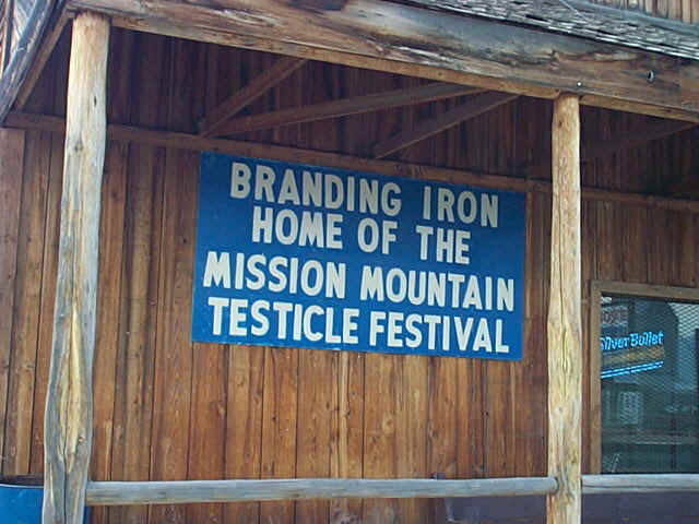 Ate breakfast in the RV. Left the St. Mary KOA and headed south on Highway 89 to Highway 2 to Highway 93 and ended up at the Jellystone RV Park in Missoula MT. Took a side trip through Charlo (Home of the Testicle Festival) and Moiese. At Moiese we went through The National Bison Range. After seeing the Bison Range we had Buffalo Burgers and bought Buffalo Jerky. The pictures are The Glacier Lodge at East Glacier, A sign on the side of a bar in Charlo MT. and A Bison at the reserve. Tomorrow we continue south. Dominos: Jim:13, Marilyn: 14 Mileage today: 277 Total Mileage: 1672