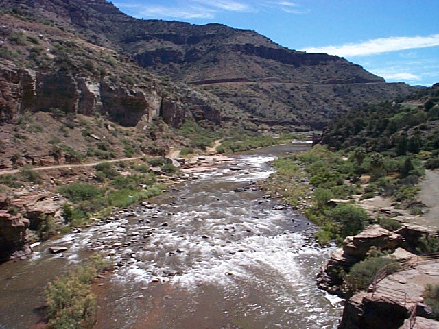 Click Pictures to Enlarge, Use Browser Back Button to Return Vacation 2001 Day: 10 Date: 05/28/2001 Got up about 6AM, unhooked the RV, put Willy Nelson's "On The Road Again" on the CD player, got on highway 60 east and put Mesa AZ in our rear view mirror. Stopped for breakfast in Superior AZ and saw the "Smallest Museum in the World". Continued on 60 to Show Low AZ, turned west on highway 260 to Payson where we got a place to stay at the Ox Bow Estates RV Park. We haven't said anything about the weather, it was in the 90's at Ajo, Tucson, in the 80's at the Grand Canyon. When we went back to Phoenix they got a heat wave unusual for May, 105 to 110. As I write this it is 84 in Payson with a nice breeze. Payson is about 5000 feet. Hope to have more pictures for you tomorrow. Pictures: The Smallest Museum in the World, Superior AZ and the Salt River in Salt River Canyon.