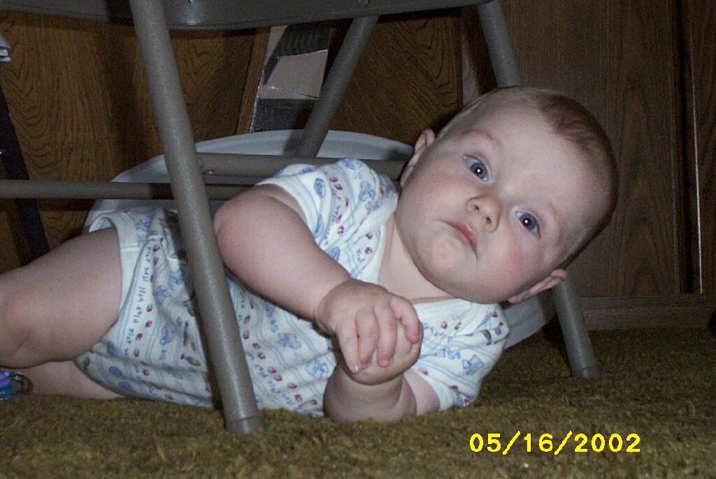 Click Pictures to Enlarge, Use Browser Back Button to Return Vacation 2002 Day: 17 Date: 05/20/2002 Left St. Michael and drove to eat Breakfast with Phil, Judith and their daughter Susan. After breakfast we drove to Spring Valley MN. to visit with Jim and Rita Ryan. Marilyn lived with Rita while doing nurses training with Rita at St. Mary's Hospital and the Mayo Clinic in Rochester MN.. Had supper with the Ryan's then camped the night in front of their house. This concludes the Minnesota Visiting phase of the trip. Tomorrow we head out of Minnesota. Didn't take any pictures today so you get baby pictures of Devin Fresh from Mischa.