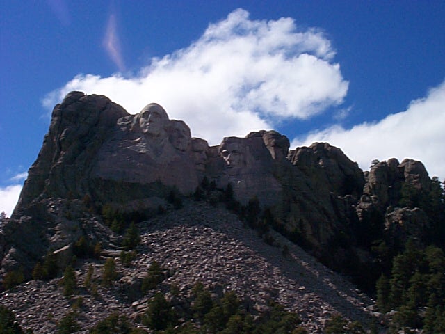 Click Pictures to Enlarge, Use Browser Back Button to Return Vacation 2002 Day: 19 Date: 05/22/2002 Had bacon and eggs in the RV for breakfast. Drove east on I-90 to the Bad Lands National Park. Drove on a loop through the park and got back on I-90. Continued east to Wall South Dakota to see the famous Wall Drug Store. Got back on I-90 to Rapid City SD.. Did some food shopping in Rapid City then got on highway 16 south to Mount Rushmore. It was cold and windy there so we took our pictures and left for Crazy Horse Mountain. Still cold and windy but we took a bus to the base of the mountain and toured the visitor center. Left Crazy Horse and got a place to stay at a KOA outside Custer SD.. As I write this the temperature outside is 32.