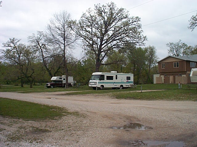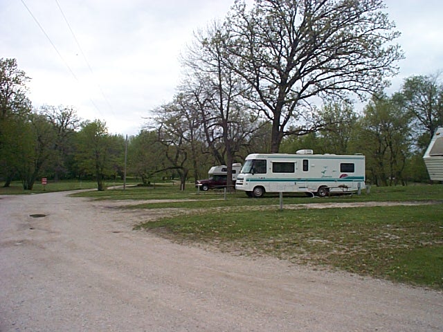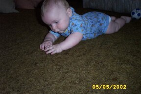 Click Pictures to Enlarge, Use Browser Back Button to Return Vacation 2002 Day: 9 Date 05/12/2002 Happy Mothers Day to all you Mothers. We haven't said mush about the weather because it's been sunny and nice the whole trip. Well that changed yesterday afternoon, it clouded up and started to rain. After I made up the last e-mail we watched the 10:00PM news on TV and found out there was a tornado on I-70 about 35 miles west of Salina about the time we came through there. Today we got up and got on Highway 81 north to York Nebraska then turned on I-80 east, continued on I-80 to Des Moines Iowa. Gassed up and ate dinner then got on I-35 north and stopped Story City IA near Ames. Today's weather was cloudy all day (They have May Gray also) and cool. No modem hookup here, so you will get this a day late. Didn't take any pictures along the way so you get our campsite in Story City and Devin discovering the carpet.