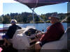 Click Pictures to Enlarge, Use Browser Back Button to Return Vacation 2003, Day 16 Date: 09/20/2003 Betty cooked breakfast for all of us. Then Jim hooked their pontoon boat up and we headed for Foster Lake, about 10 minuets from their house. We cruised around the lake and and up a couple of rivers. On the second river They tied up to an old stump in the water and we had lunch on the boat. After Lunch we headed home. For dinner Jim and Betty took us to a Country Club about 10 miles from sweet Home. After dinner we played Shang-hi, both Jim's won 1 game. No Dominos tonight. Domino Scores Jim: 22 Marilyn: 20 Lowest Gas Price: $1.79 Sweet Home. Mileage Today: 0 Mileage For Trip: 3174