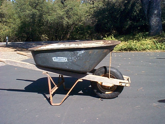 Click Pictures to Enlarge, Use Browser Back Button to Return Vacation 2003, Day 20 Date: 09/24/2003 Just hung out at Dad's house again today. His 30 year old wheelbarrow had a flat tire, so we went into town and got another tire and tube which I put on. Then I raked the ditch and cleared the culvert under the driveway. Bar-B-Q'ed chicken for dinner. Played Yahtzee with Dad, he won both games. Pictures: wheelbarrow, culvert. Domino Scores Jim: 26 Marilyn: 26 Lowest Gas Price: $ Mileage Today: 0 Mileage For Trip: 3728