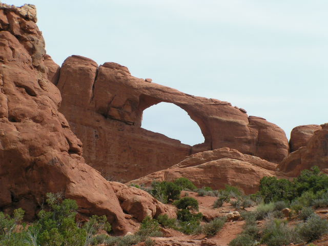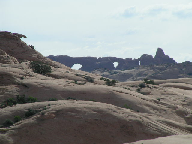 Click Pictures to Enlarge, Use Browser Back Button to Return Vacation 2004, Day 4 Date: 05/09/2004 Happy Mothers Day to Marilyn, Mischa and the rest of you Mothers. Happy Birthday to Micheal Thompson. Had Chorizo and eggs or breakfast in the RV. Headed north from Moab on 163 to Arches National Park, toured the park and took pictures. Continued north on 163 to I-70 east. Drove east on I-70 through Aspen CO over Loveland Pass to Denver were we turned on 76 east stopping about 30 miles out of Denver. BBQ'ed Halibut for dinner.