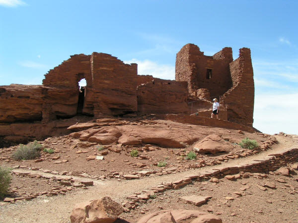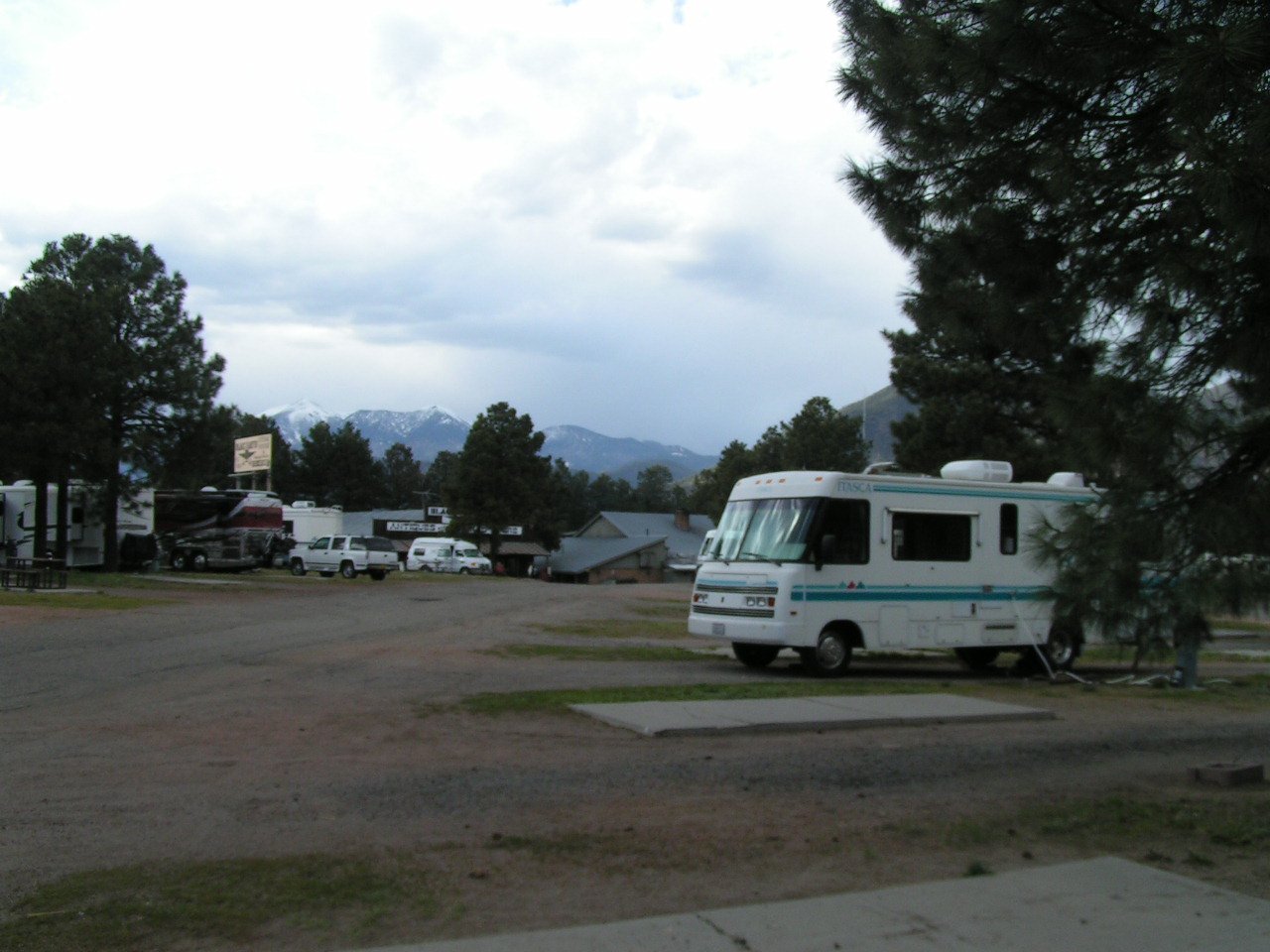 Click Pictures to Enlarge, Use Browser Back Button to Return Day 02 Date: 05/14/2005 Had breakfast in the RV. Checked out the garage sale which was well underway. About 10:00AM we said goodbye and thanks to Jon and Faye and headed north out of Phoenix on I-17. Drove through Flagstaff to Sunset Crater Volcano National Monument. Walked a nature trail through the lava flow then drove to Wukoki Pueblo Indian ruins and walked around there. After leaving the Indian ruins we drove back to Flagstaff and got a place to stay at the Black Bart RV Park and Steak House. Had Dinner at the steak house which included a musical review. Domino Scores Jim: 0 Marilyn: 0 Lowest Gas Price: $2.24 Mileage Today: 223 Mileage For Trip: 582 |