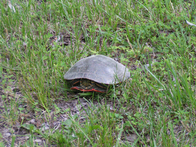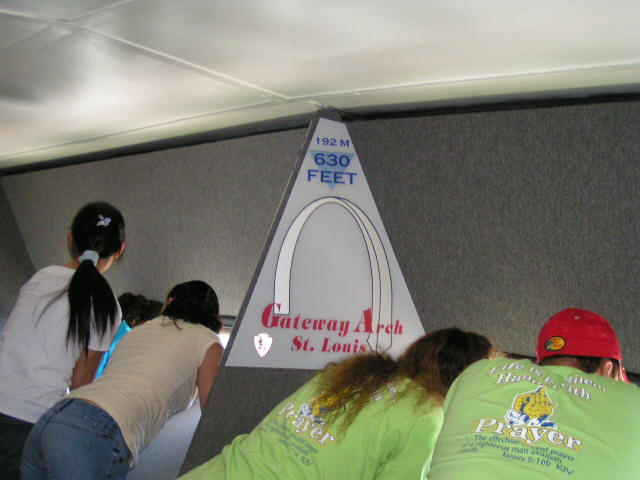 Click Pictures to Enlarge, Use Browser Back Button to Return Day 07 Date: 05/23/2006 Left the KOA and went to the Waffle House for breakfast, BIG mistake! Drove back into St. Louis to the Gateway Arch. Went up to the top of the arch and took pictures. After the arch we went to the Missouri Botanical Gardens. Walked around the gardens and checked out an exhibit of blown glass by Dale Chihuly it was quite impressive. The botanical gardens are way to big to see in the few hours we spent there, but we wanted to get back on the road, so we did. From St. Louis we went north on Hwy 61 until we got to Keokuk Iowa. We are staying at the Hickory Haven Campground. At the campground Marilyn spotted a turtle walking toward one of the two ponds and I took it's picture. Domino Scores Jim: 12 Marilyn: 12 Weather: Warm 70's and 80's Lowest Gas Price: $2.63 Mileage Today: 239 Mileage For Trip: 2280 |