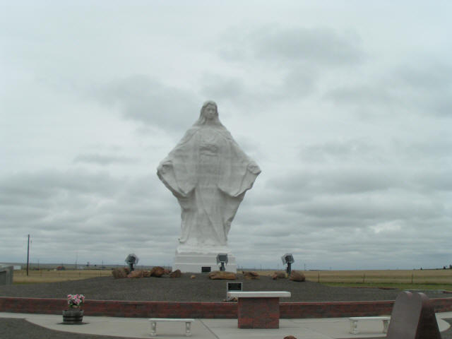 Click Pictures to Enlarge, Use Browser Back Button to Return Vacation 2007, Day 05 Date: 09/09/2007 Breakfast in the RV. It was sunny when we left Rawlins on I80 east. We hit fog just past Laramie that continued through Cheyenne then it was cloudy with some showers. Stopped to see Our Lady of Peace Shrine in Pine Bluffs WY. Continued east on I80. Stopped for dinner/supper at Perkins Restaurant in North Pine Bluffs NE, then on to Lincoln NE where we are staying the night at Camp-A-Way campground. Domino Scores Jim: 7 Marilyn: 5 Weather: Rawlins sunny, Laramie to Cheyenne fog then clouds and showers. Lowest Gas Price: $2.69 Mileage Today: 625 Mileage For Trip: 1968 |