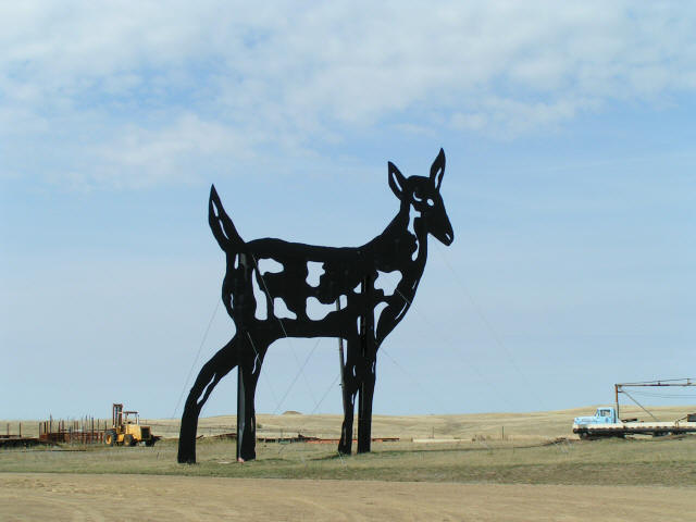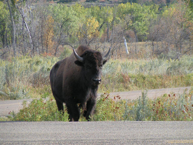 Click Pictures to Enlarge, Use Browser Back Button to Return Vacation 2007, Day 15 Date: 09/19/2007 Kathy was supposed to fix muffins at 7:30, but muffins turned into Sausage, eggs, hash browns, pancakes and fruit. After breakfast we said goodbye to Kathy and Mike and left Wadena on Hwy10 north to Fargo ND where we joined I94 west. Continued on I94 through Bismarck ND. We came across signs for the Enchanted Highway so we turned off, we saw two large metal sculptures but when we found out the highway was 30 miles long we went back to I94 and continued west to Hwy85 north to Theodore Roosevelt National Park (north). Made a quick tour of the park, saw some buffalo and deer. Then continued north to Watford where we fueled up and had supper at the Dakotan. Then it was back on Hwy 85 south to I94 west to Medora ND where we found a campground. It was after dark and the office was closed. We found a spot but the water was turned off, it looks like they are winterizing, but the electric was on and we could dump our tanks so we will spend the night. Marilyn won three games of dominos. Domino Scores Jim: 17 Marilyn: 12 Weather: Cloudy, Sunny then Cloudy again. 60's-70's Lowest Gas Price: $2.79 Mileage Today: 568 Mileage For Trip: 3486 |