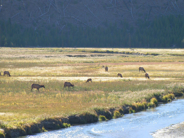 Click Pictures to Enlarge, Use Browser Back Button to Return Vacation 2007, Day 17 Date: 09/21/2007 Had breakfast in the RV. As we were leaving we noticed snow covering the mountains behind town. Got back on I90 and continued west to Livingston where we fueled the RV and got on Hwy89 south to Yellowstone National Park. Both Marilyn and I have been to Yellowstone before just drove through to Old Faithful, watched it erupt, had a late lunch at the Geyser Grill. While driving we saw buffalo and Elk. We left the park by the West Yellowstone entrance. From West Yellowstone we the drove west on Hwy20 to Idaho Falls where we got on I15 south to Pocatello ID where we stay the night at the KOA. Domino Scores Jim: 19 Marilyn: 14 Weather: Sunny, 60's and 70's Lowest Gas Price: 2.61 Pocatello ID Mileage Today: 358 Mileage For Trip: 4263 |