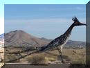 Roadrunner statue at Las Cruces Nm rest stop Vacation 2009, Day 02, June 12 Faye cooked Bacon, eggs, potatoes and toast for breakfast. After breakfast we said goodbye to Jon and Faye and got on I-10 east and drove through Phoenix, Tucson, across New Mexico and into Texas. We are staying the night at the Koa in Van Horn Tx. Had supper at Papa's Cafe near the campground. Domino Scores Jim: 01 Marilyn: 02 Weather: Warm, low 90s Lowest Gas Price: $2.45 Mileage Today: 571 Mileage For Trip: 934