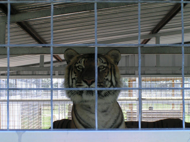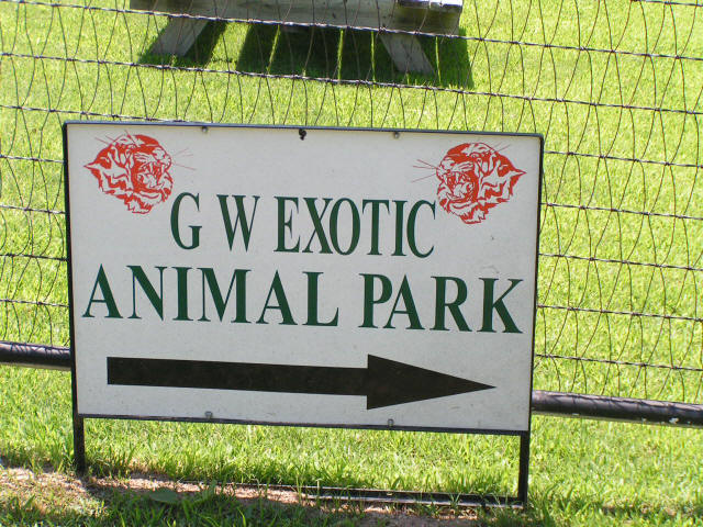 Click to enlarge picture, use back button to return Vacation 2009, Day 05, June 15 Well Toto, I think we're back in Kansas, and we are along with the Tornados! More about that later. The day started with breakfast in, then back on I-35 north. Along the highway we saw a sign for G. W. Exotic Animal Park, we stopped and checked it out. They claim to rescue exotic animals from bad situations and give them homes at the park. They said they have over 150 species at the park. We took the short tour, but still saw a lot of animals. After getting back on I-35 I stopped for fuel at Newcastle Ok, There was a Sonic Drive-in next door so we drove over for lunch. When we drove in it looked like there was seating inside and since the RV won't fit in a drive in spot I parked it behind the building and we walked up front to find there was no inside seating! So we stood in one of the drive in spots, pushed the service button and ordered, paid with plastic and waited for the carhop to bring our food which I took back to the RV where we ate in air-conditioned comfort. The biggest difference I noticed between the old drive-ins and the new drive-ins is they don't have the trays that hook on the windows. That's because everybody keeps the windows rolled up and the engine running with the air on. Back on I-35 out of Oklahoma into Kansas where it turned into a turnpike through Wichita Ks to El Dorado Ks where I got the last camping spot available at Deer Grove RV Park. When I checked in the lady told me the tornado shelter was down in the basement under the laundry room and we could get some bad weather. I asked if there was a siren, she said no, somebody would knock on our door and tell us to go to the shelter. After we parked and hooked up Marilyn started supper and it started to rain, then it started to hail, then the lady came and said to go to the office, which we did in the rain and hail. then they told us to go to the basement, where we stayed for about 45 minuets while getting status reports from the office lady where tornados were touching down nearbye. After the all clear we went back to the RV and finished supper. This must be the longest report I have ever made, so I am going to quit now and watch the continuous TV coverage of where the storms and tornado warnings are. Domino Scores Jim: 8 Marilyn: 8 Weather: Sunny and Hot to Rain, Hail and Tornados Lowest Gas Price: $2.499 Mileage Today: 440 Mileage For Trip: 2063