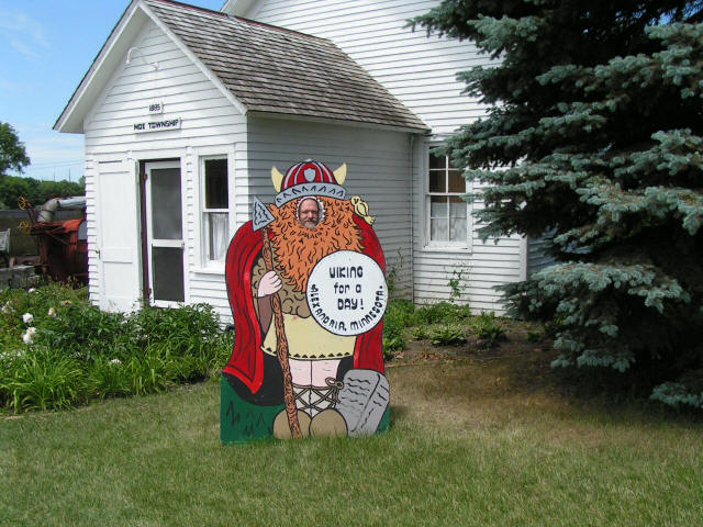 Click to enlarge picture, use back button to return Vacation 2009, Day 16, June 26 Breakfast was ham and cheese omelets and toast in the RV. After breakfast we went and saw the Runestone Museum in Alexandria. The museum has exhibits of early Alexandria and the Runestone, a stone tablet found by a farmer that shows that the Vikings were in Minnesota long before Columbus discovered America. After the the museum we took a drive to some of the towns around Alexandria. We ended up at Dave and Susie Lusty's Farm outside Miltona. Susie fixed supper and then Dave took us all on a drive around the Miltona area. We spent the night camped in the barn yard. Domino Scores Jim: 12 Marilyn: 13 Weather: Mostly Sunny, high 80's Lowest Gas Price: $2.39 Mileage Today: 51 Mileage For Trip: 3323