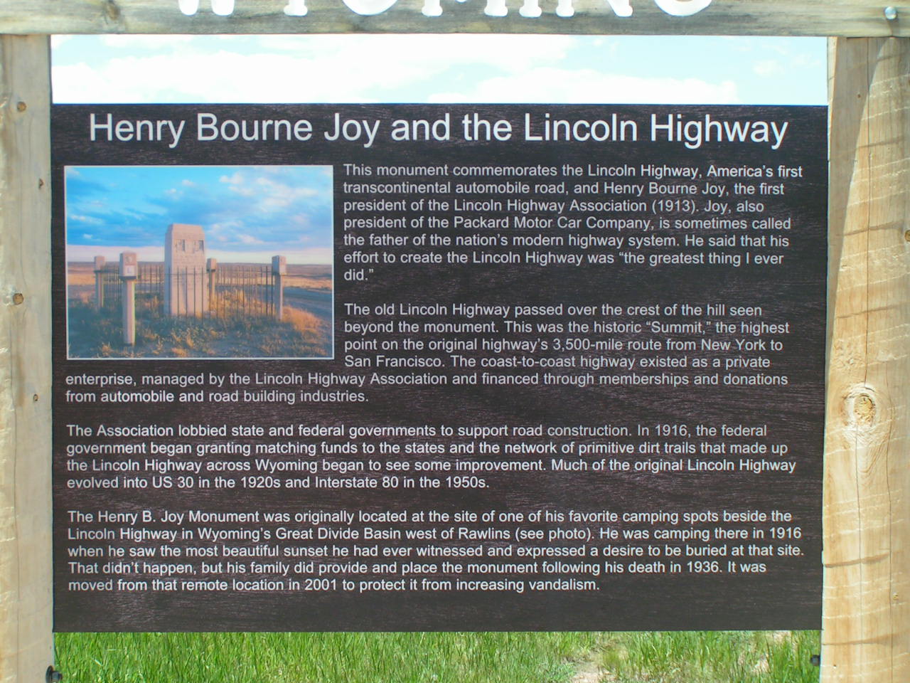 Click to enlarge picture, use back button to return Vacation 2009, Day 19, June 29 The day started with breakfast in the RV. It was back on I-80 west all the way to Rawlins WY. We are here to visit my mother-in-law, Maxine Ballard and her friend Barbara Larson. The pictures were taken at The Lincoln Monument between Cheyenne and Laramie where I-80 reaches it's highest point, 8640 feet. The monument commemorates the highest point of the Lincoln Highway, the first transcontinental highway. Domino Scores Jim: 19 Marilyn: 17 Weather: sunny, warm low 90's Lowest Gas Price: $2.349 Mileage Today: 412 Mileage For Trip: 4474