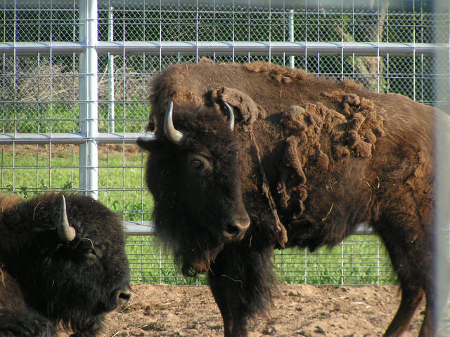 Vacation 2011, Day 03, June 05 Got up, packed up and left the campground. Went to Denny's for breakfast. We gave the waitress our orders and waited, after about 20 minuets later we asked Lala (our waitress) where our food was, she went and checked and said our order was lost, we re-ordered, and we waited, and waited. I asked Lala to send the manager, she said he was busy working in the kitchen, that they were behind (no kidding). Lala said the system was down and they were having to write the orders by hand and MOST people understood! The people next to us came in after us got their food, paid and left before we got ours. After about an hour we got some food, mine was what I ordered, Marilyn's was not, she was was missing the hash browns. The manager finally came apologized and asked what we thought he should do, we told him "take care of the bill", he asked "the whole bill" we said YES! He grudgingly did. After Denny's we filled up the RV and got back on I-40 east. Stayed on I-40 through Texas and into Oklahoma until we got to Oklahoma City where we got a place to stay at the Rockwell RV Park. Went across the freeway and ate supper at the Texas Roadhouse. Came back to the RV park and took pictures of some buffalo they have in a corral.