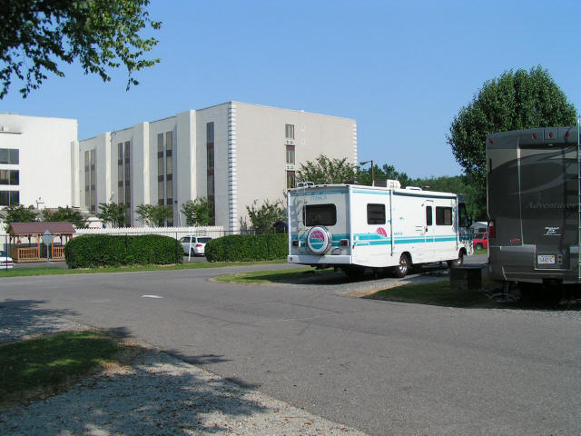 Vacation 2011, Day 04, June 06 Had Breakfast in the RV. Packed up and got back on I-40 east. Drove out of Oklahoma into Arkansas, stopped in Little Rock to Fuel up then drove out of Arkansas into Tennessee. Got a place to spend the night at Graceland RV Park. Marilyn fixed supper in the RV. Took a picture of the RV in the campground with the Heartbreak Hotel behind it. Domino Scores Jim: 5 Marilyn: 5 Weather: Clear skies and Hot Lowest Gas Price: $3.43 Mileage Today: 478 Mileage For Trip: 1832 Copyright 2011