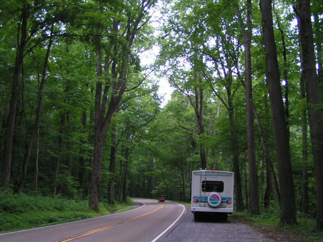 Vacation 2011, Day 15, June 17 Driving through Great Smoky Mountains National Park Dolly Parton - Country Crossroads Show Had breakfast in the RV. Got back on I-40 west for 10 miles and got off at Hwy-19 and drove to Cherokee NC where we turned onto Hwy-441. Hwy-441 took us through the Great Smoky Mountains National Park and on to Pigeon Forge TN where we got a place to stay at the Riveredge RV Park. After checking in at the RV park we caught the Fun Time Trolley to Dollywood. While at the park we went through a lot of shops, saw Dolly in a parade, watched the Country Crossroads show and ate supper at the Chicken House restaurant then it was back on the trolley for the trip back to the RV.