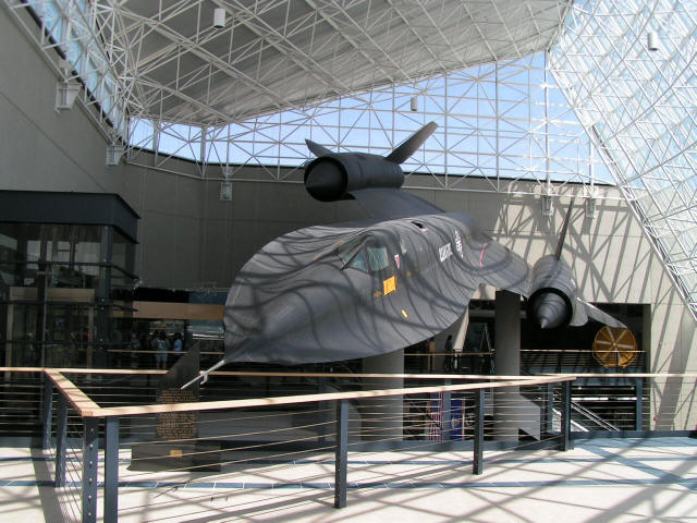 Vacation 2012, Day 40 July 25 1. Strategic Air Command insignia. 2. SR-71 Blackbird in lobby of Museum. Click pictures to enlarge. Went back in the Casino and ate breakfast at B. J.'s Cafe. Packed up and headed west on I 80. Just west of Omaha NE we saw a sign for the Strategic Air Command Air and Space Museum. We stopped and took a guided tour of the Museum. We saw many WWII to present planes. After the museum we got back on I 80 west to Grand Island and the south on US 281 to Hastings NE. Had supper at Applebee's. Staying at Hastings Campground. Domino Scores Jim: 78 Marilyn: 82 Weather: Sunny, Hot, Humid Lowest Gas Price: Mileage Today: 246 Mileage For Trip: 6990 Copyright 2012
