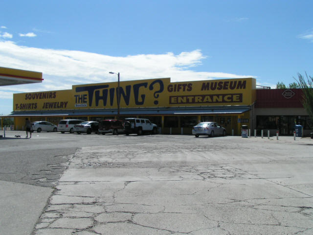 Vacation 2012, Day 46 July 31 1. The Thing. 2. Ostrich Ranch. Click pictures to enlarge. Ate breakfast at Kranberry's. Got back on I 10 west. Stopped at Dragoon AZ to see THE THING. After paying $1 to tour the museum and see The Thing it was back on I 10 to Tucson AZ where we went to La Mesa RV to see if they could fix the electric step on the RV that stopped working yesterday. They sent me to B & C RV & Marine Service who did the repair. Back on I 10 to Picacho AZ where stopped at the DQ for ice cream and to see Rooster Cogburn's Ostrich Farm, but it is closed on Tues, Wed and Thurs. I did take some pictures over the fence. From Picacho we drove to Glendale AZ to visit a friend, Faye Velle. We all went to supper at Olive Garden and then back to Faye's to visit. Domino Scores Jim: 90 Marilyn: 100 Weather: Sunny, Hot, Windy with blowing dust in the afternoon. Lowest Gas Price: $3.259 Mileage Today: 316 Mileage For Trip: 8478 Copyright 2012