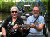 Vacation 2013, Day 12 June 19 Swamp Airboat, Oak Ally, Laura Click pictures to enlarge Breakfast in the RV. Drove to our first adventure, an Airboat Swamp Tour. Our driver/guide was Rodney. He gave us about a two hour tour of the swamp. He introduced us to our first alligator before we even left the dock. He knew most of the gators in the swamp by their first names and would stop along the tour to feed them chicken legs and try to get them to come in the boat, fortunately none made it in. Next we drove to Oak Ally for a plantation tour and then we drove to Laura, another plantation, for another tour. We had planed on three plantation tours, but after two it was 4PM and we were tuckered out, so we headed back to the RV park. Grilled hot dogs for supper. Domino Scores Jim: 21 Marilyn: 19 Weather: Warm, Humid, mostly cloudy with a few sprinkles. Lowest Gas Price: Mileage Today: 86 Mileage For Trip: 2476 Copyright 2013