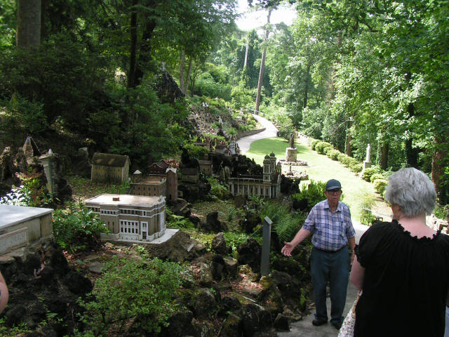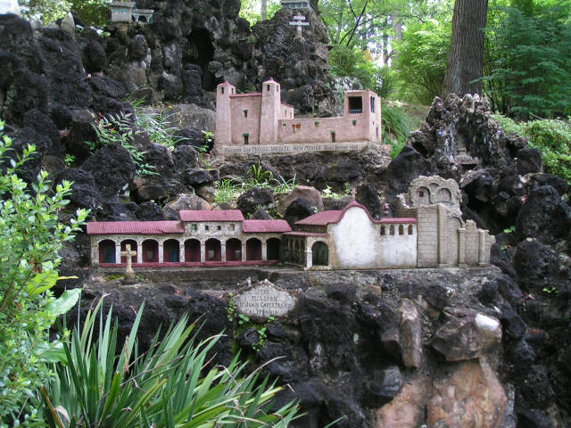 Vacation 2013, Day 20 June 27 Ave Maria Grotto at St. Bernard Abby, Natural Bridge of Alabama Click pictures to enlarge Breakfast at Cracker Barrel. Went to see Ave Maria Grotto at St. Bernard Abbey in Cullman AL. The Grotto consists of a landscaped hillside of 125 small stone and cement structures, the handiwork of Brother Joseph Zoetl, a monk of the Abbey for almost 70 years. Our guide, Mr. Leo Schwaiger has labored to preserve Brother Joseph's work since 1963 and has made several additions to the Grotto. After visiting the Grotto we left Cullman on US-278 West to Natural Bridge AL where we saw a natural sandstone bridge that spans 148 feet, the longest natural bridge east of the Rockies. After the Grotto we got on HWY-13 South to I-20 East to Pell City AL where we ate supper at another Cracker Barrel. The we found a place to stay at Lakeside Landing Marina and RV Park on Logan Martin Lake in Cropwell AL. Domino Scores Jim: 38 Marilyn: 36 Weather: Thunder storm at night, then Hot and Humid with scattered clouds. Lowest Gas Price: $3.169 Mileage Today: 3797 Mileage For Trip: 225 Copyright 2013