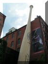 Vacation 2013, Day 49 July 26 Churchill Downs Grandstands, Marilyn with Orb, this years Kentucky Derby Winner 120 foot tall bat outside the Louisville Slugger Museum and factory. Click pictures to enlarge Breakfast in the RV. Decided to leave the RV at the campground and use taxis today because one of our stops is in downtown Louisville and parking the RV could be a problem. First stop was Churchill Downs, home of the Kentucky Derby. We went through the Kentucky Derby Museum, went on a walking tour of the grandstands with our guide John, then we went on bus tour of the backstretch and barns with guide Angie. Next we took a cab to downtown Louisville and saw the Louisville Slugger Museum and factory. After touring the factory we walked over to "Fourth Street Live" a section of Fourth Street that is lined with restaurants and bars and is closed to traffic for concerts and entertainment. Ate supper at Gordon Biersch Brewery Restaurant. The nights entertainment was starting but we decided to get a cab and go back to the campground. Domino Scores Jim: 96 Marilyn: 100 Weather: Warm and a little humid. Lowest Gas Price: Mileage Today: 0 Mileage For Trip: 6857 Copyright 2013