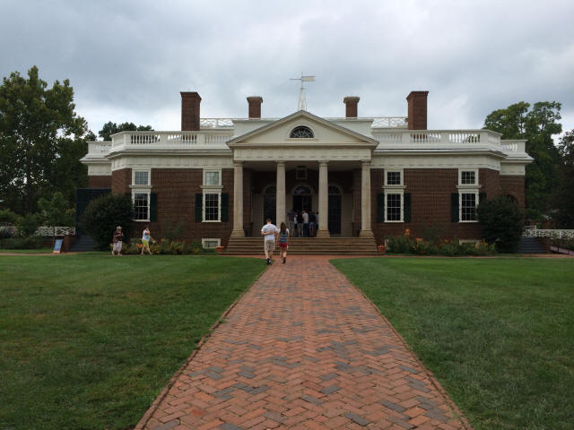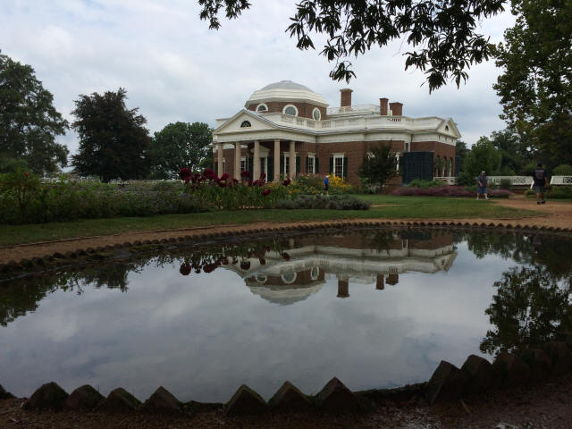 Vacation 2014, Day 14, September 04 Front of the house - Thomas Jefferson - Back of the house Click to enlarge Breakfast in the RV. After breakfast we drove the truck to Monticello, Thomas Jefferson's home. Took a guided tour of the house and then walked around the grounds, went through the museum, had some cold drinks in the cafe and of course, made some purchases in the gift shop. Then it was back to the campground. Grilled halibut for supper. Domino Scores Jim: 27 Marilyn: 28 Weather: Had some rain during the night, mostly cloudy during the day, warm and humid. Lowest Gas Price: $3.159 Mileage Today: 0 Mileage For Trip: 2983 Copyright 2014