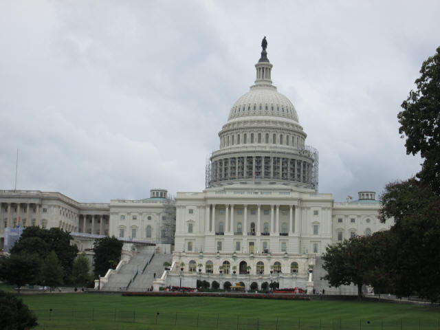 Vacation 2014, Day 18, September 08 Click to enlarge Got up at 5:30am, had coffee and a quick breakfast in the RV. Drove the truck up to the campground bus stop to catch the Gray Line Bus at 6:55. The bus took us to the Union Station Terminal where we got on our "DC in a Day Tour" bus at 8:00am. First stop was the U.S. Capital Building where we got a guided tour of the capital. Next was the National Air and Space Museum, White House, World War II Memorial and Martin Luther King Jr. Memorial. Then back to Union Station to catch the bus back to the campground, Went to supper at TJ's near the campground. Then back to the RV for dominos. Domino Scores Jim: 37 Marilyn: 36 Weather: Cloudy all day with some sprinkles. Low to mid 70's. Lowest Gas Price: $3.259 Mileage Today: 0 Mileage For Trip: 3129 Copyright 2014