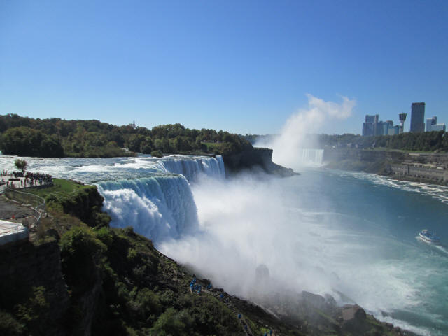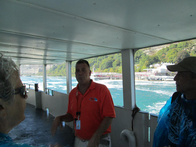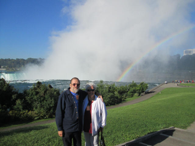Vacation 2014, Day 36 September 26 Marilyn and Me at Horseshoe Falls - Our Driver/Guide Jim - American Falls (Front) Horseshoe Falls (Back) Click picture to enlarge, use back button to return Set the alarm and had a quick breakfast in the RV so we could catch the tour bus at 8:20am. There were only two other couples on our bus, one from Oregon the other from Texas all of us staying at the RV park. We saw the falls from the top down, bottom up, side to side and up close. And we got wet! The tour lasted about four after the tour we stayed at camp for awhile and then went to Wal-mart and did some shopping. Went back to Taylor's Tap Room and Grill for the Friday Fish Fry. Domino Scores Jim: 75 Marilyn: 76 Weather: Sunny and Warm Lowest Gas Price: $3.679 Mileage Today: 0 Mileage For Trip: 4469 Copyright 2014