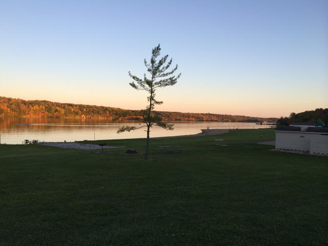 Vacation 2014, Day 39 September 29 "The Beach" and rowers on the lake with fall colors on the far shore, Hueston Woods State Park Click picture to enlarge, use back button to return Left Bear Creek Resort KOA and headed south on I-77 to I-70 west to I-275 west to Hwy-27 north to Oxford OH. Staying the night at Hueston Woods State Park. After setting up camp we drove over to visit Jerry and Dee Cole. Dee is a friend of Marilyn's from when she was in nurses training in Rochester MN. After the visit he had supper at Bob Evens Restaurant. Jim: 78 Marilyn: 85 Weather: Sunny and warm Lowest Gas Price: $3.219 Mileage Today: 272 Mileage For Trip: 5010 Copyright 2014