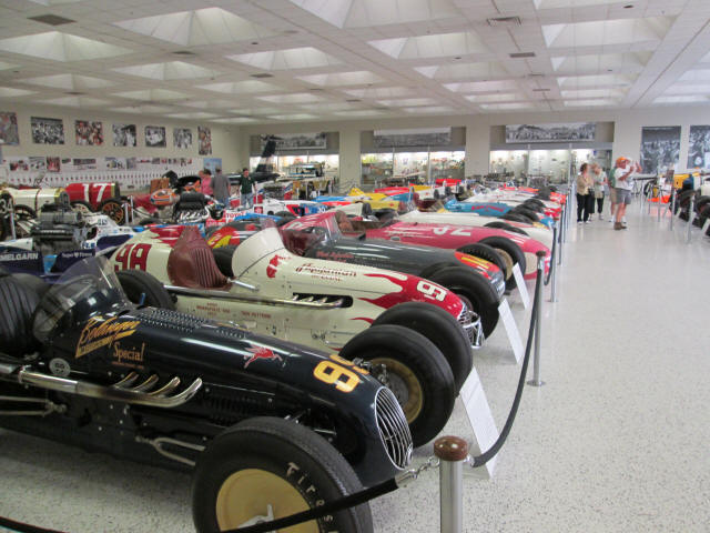 Vacation 2014, Day 41 October 01 Indianapolis Motor Speedway Hall of Fame and Museum - Start/Finish Line and Yard of Bricks - Some of the cars in the museum Click pictures to enlarge Went to breakfast at Seros (The same place we had supper last night). Then we drove to The Indianapolis Motor Speedway, "Racing Capital of the World". The first thing we did was go on a 11/2 hour tour of the grounds that included a ride around the track with a stop at the start/finish line, a visit to the media center, the Pagoda, victory platform/winners circle, the garage area, and Gasoline Alley. We also saw the museum and hall of fame. After the speedway we drove back to the campground. Later we went to supper at Montana Mike's Steakhouse. Domino Scores Jim: 84 Marilyn: 87 Weather: Mostly sunny and nice Lowest Gas Price: $3.189 Mileage Today: 0 Mileage For Trip: 5105 Copyright 2014
