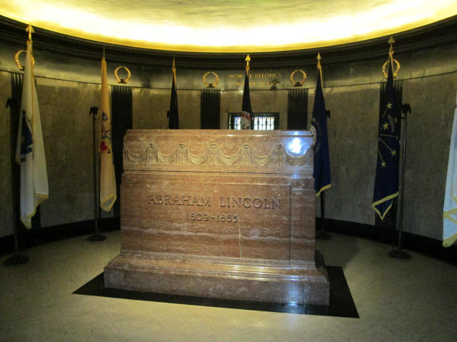 Vacation 2014, Day 43 October 03 Abraham Lincoln Museum - Abraham Lincoln Tomb Click pictures to enlarge Rained most of the night. After breakfast in the RV we headed into Springfield. First we toured the Abraham Lincoln Museum then we went across the street to Union Station and saw Lincoln: From History to Hollywood, with sets and displays from the movie Lincoln. Next we drove to Oak Ridge Cemetery to see Abraham Lincoln's Tomb. Next we stopped and ate at Sergeant Pepper's Cafe. Then back to the campground. Domino Scores Jim: 87 Marilyn: 91 Weather: Cloudy and cool, a few showers. Lowest Gas Price: $2.999 Mileage Today: 0 Mileage For Trip: 5344 Copyright 2014