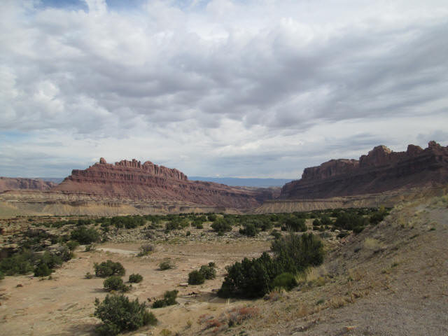 Vacation 2014, Day 61 October 21 Black Dragon Canyon from a rest stop on I-70 Click pictures to enlarge Waffles and sausage for breakfast in the RV. Packed up the RV, hooked up the truck. Drove over to the Flying J and fueled up the RV and got on I-70 west. Stopped and took some pictures at Black Dragon Canyon rest stop. Stopped for fuel again at Richfield, UT. I-70 ended and we got on I-15 south. Drove to Beaver, UT and got a place to stay at Beaver KOA. Had supper at Timberline Restaurant. Domino Scores Jim: 115 Marilyn: 115 Weather: Partly Cloudy, 70's Lowest Gas Price: $3.339 Mileage Today: 280 Mileage For Trip: 8222 Copyright 2014